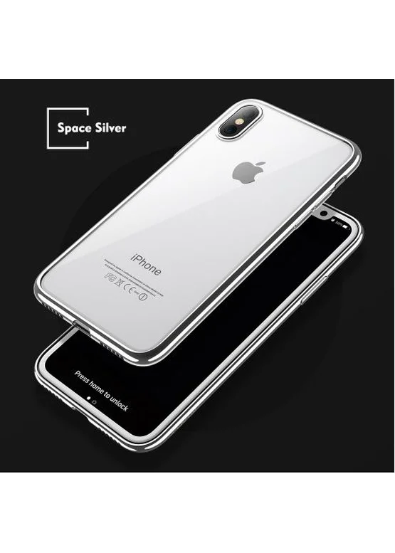 Силиконовый прозрачный чехол "Edging" серебряный для iPhone X