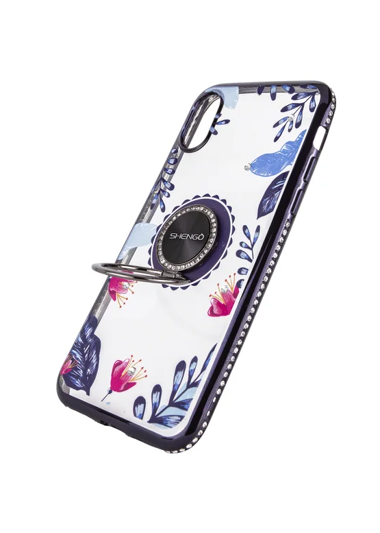TPU чехол Shengo со стразами и кольцом-держателем для Apple iPhone X / XS (5.8") (Черный)