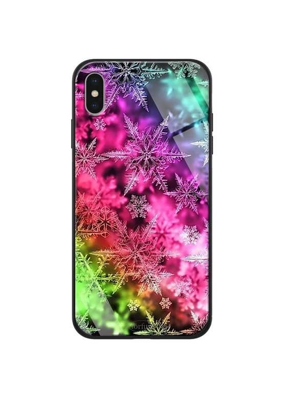 TPU+Glass чехол ForFun для Apple iPhone X / XS (5.8") Разноцветные Снежинки / Розовый