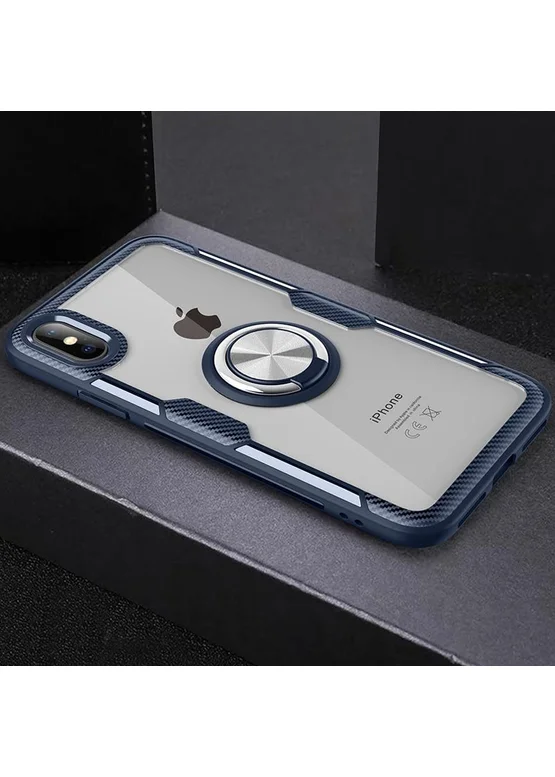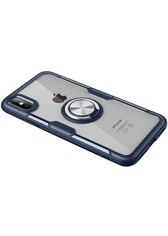 TPU+PC чехол Deen CrystalRing for Magnet (opp) для Apple iPhone X / XS (5.8") (Бесцветный / Темно-синий)
