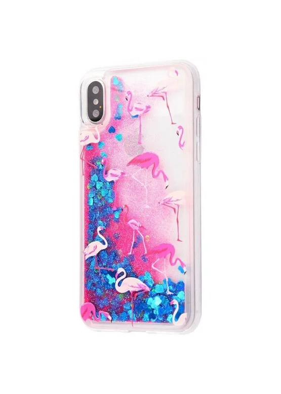 TPU+PC чехол Liquid (glitter) для Apple iPhone X/XS (12) Розово-синий фламинго