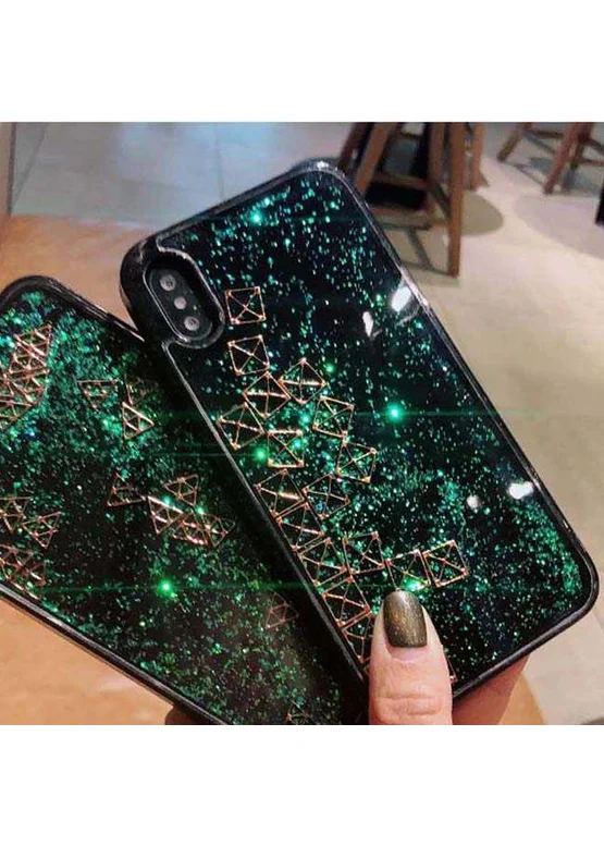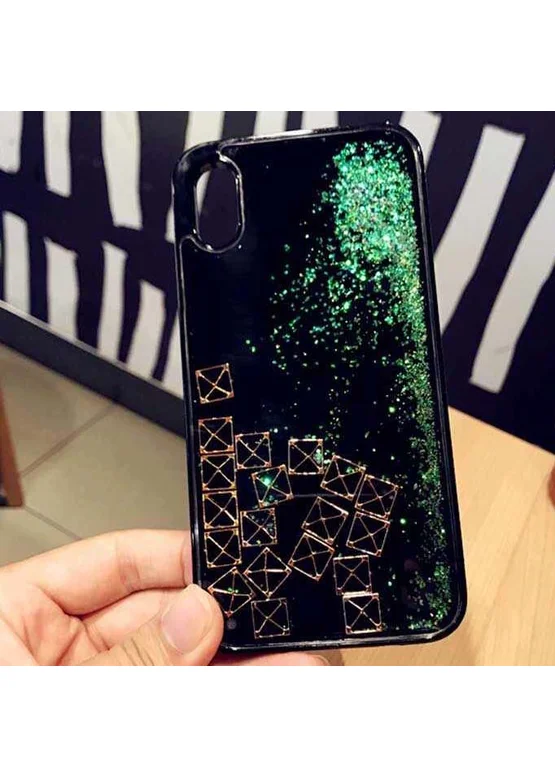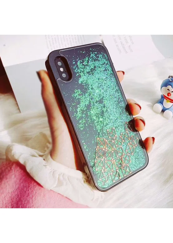 TPU+PC чехол Liquid (glitter) для Apple iPhone X/XS Тетрис / Зеленый
