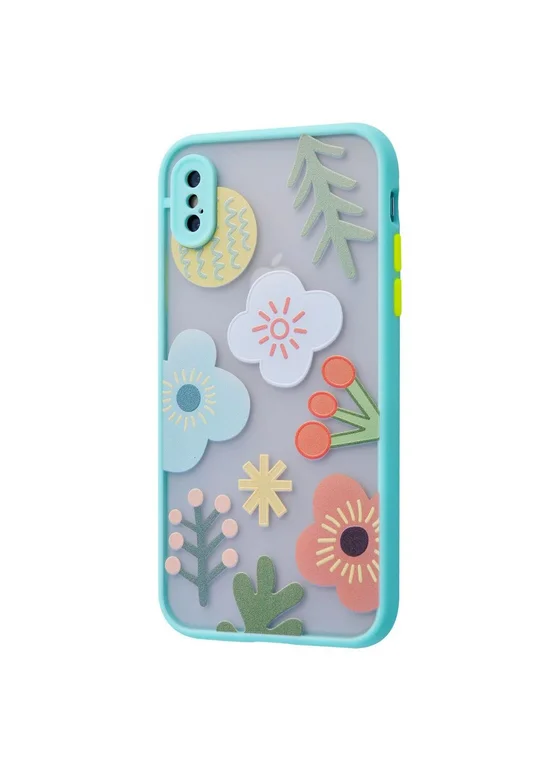 TPU+PC чехол Picture Color Buttons для Apple iPhone X / XS (5.8") (Бирюзовый / Цветы)