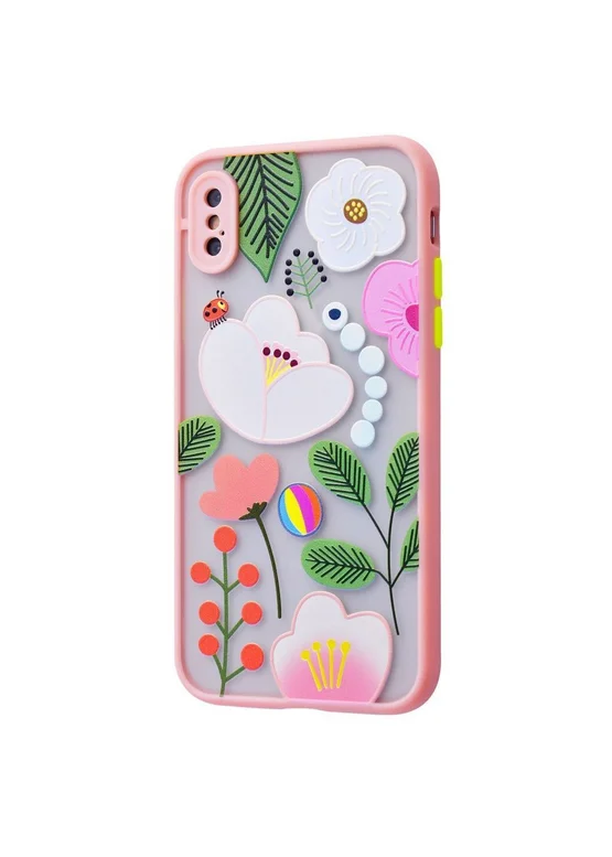TPU+PC чехол Picture Color Buttons для Apple iPhone X / XS (5.8") (Розовый / Цветы)