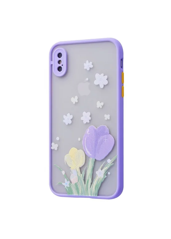 TPU+PC чехол Picture Color Buttons для Apple iPhone X / XS (5.8") (Сиреневый / Цветы)