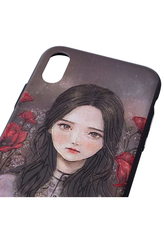 TPU+PC чехол YCT картина для Apple iPhone X (5.8") / XS (5.8") (Девочка в красных цветах)