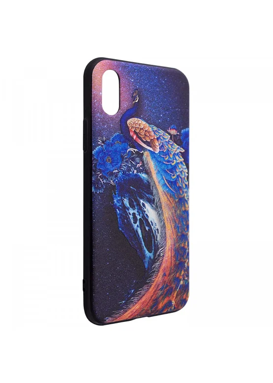 TPU+PC чехол YCT тиснение для Apple iPhone X (5.8") / XS (5.8") (Синий павлин)