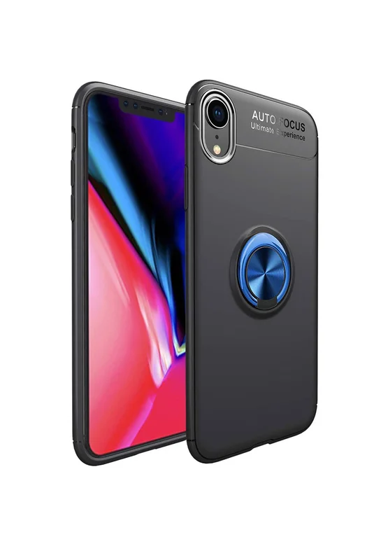 TPU чехол Deen ColorRing под магнитный держатель (opp) для Apple iPhone XR (6.1") Черный / Синий