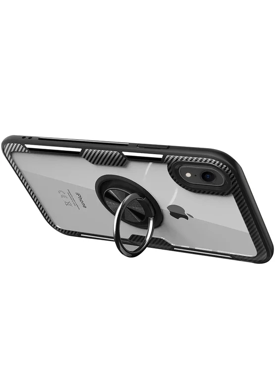 TPU+PC чехол Deen CrystalRing for Magnet (opp) для Apple iPhone XR (6.1") (Бесцветный / Черный)