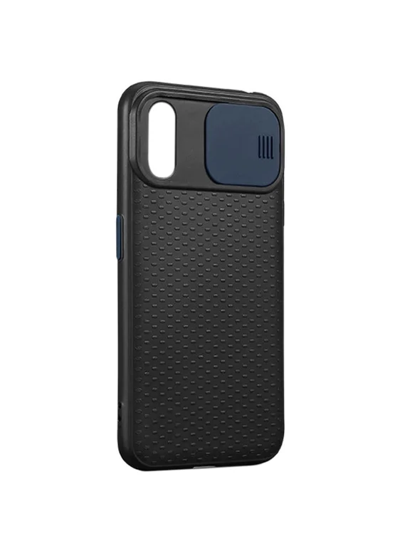 Чехол Camshield Black TPU со шторкой защищающей камеру для Apple iPhone XS Max (6.5") (Черный / Синий)