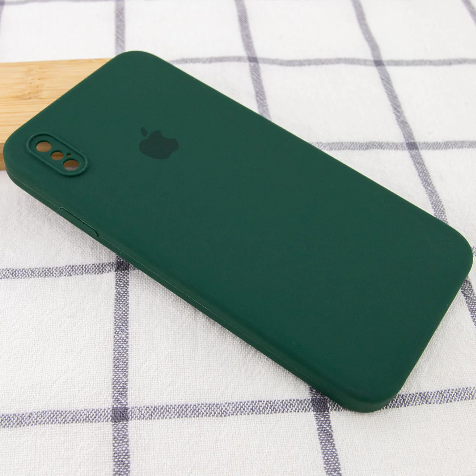 Чехол Silicone Case Square Full Camera Protective (AA) для Apple iPhone XS Max (6.5") Зеленый / Dark green