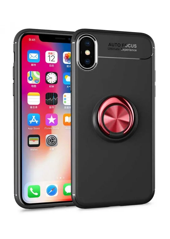 TPU чехол Deen ColorRing под магнитный держатель для Apple iPhone XS Max (6.5") Черный / Красный
