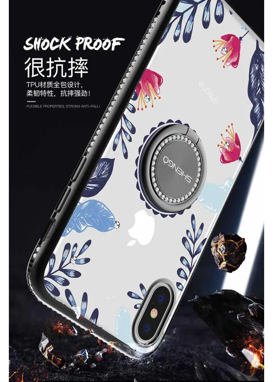 TPU чехол Shengo со стразами и кольцом-держателем для Apple iPhone XS Max (6.5") (Черный)