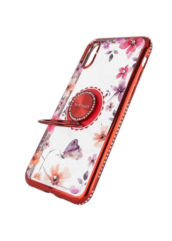 TPU чехол Shengo со стразами и кольцом-держателем для Apple iPhone XS Max (6.5") (Красный)