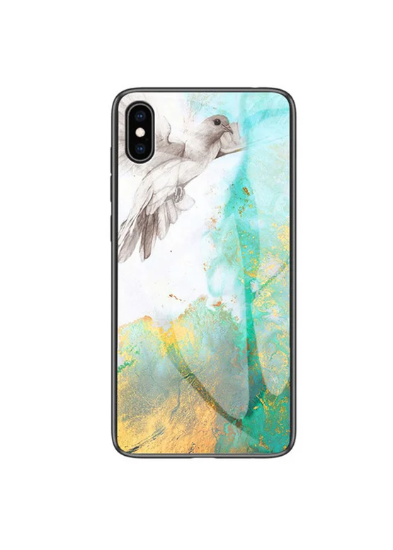 TPU+Glass чехол Luxury Marble для Apple iPhone XS Max (6.5") (Птица / Бирюзовый)