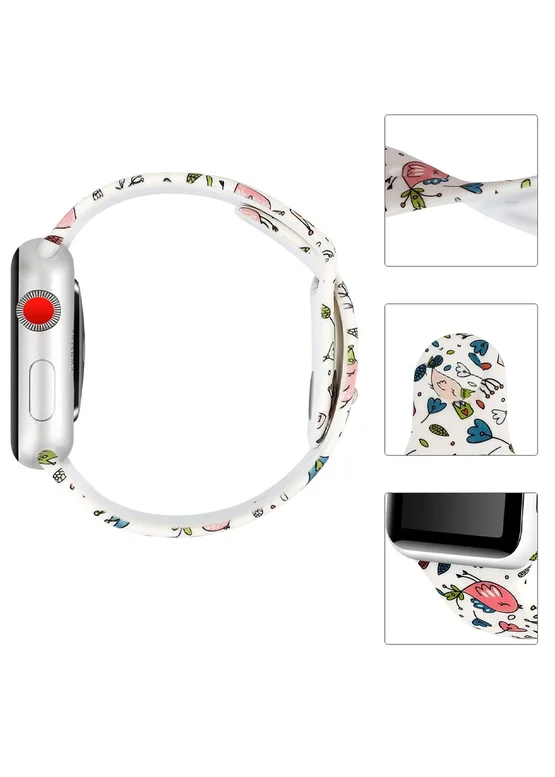 Силиконовый ремешок с рисунком для Apple watch 38mm / 40mm (Белый / Птички)