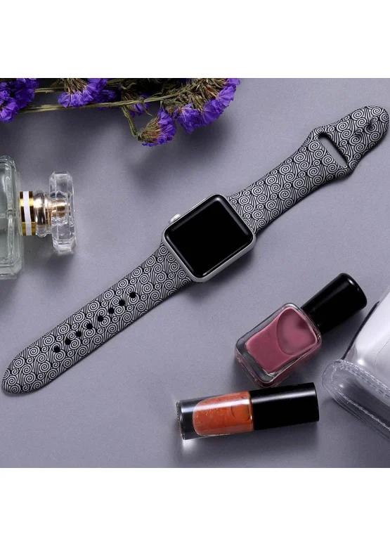 Силиконовый ремешок с рисунком для Apple watch 38mm / 40mm (Черно-белые узоры)