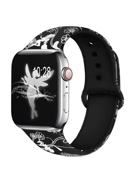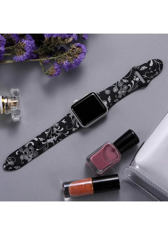 Силиконовый ремешок с рисунком для Apple watch 38mm / 40mm (Черный/Цветы)
