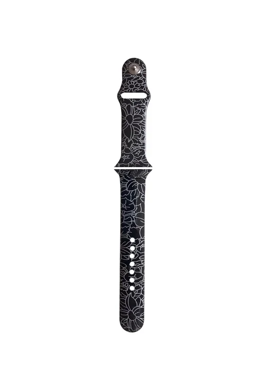 Силиконовый ремешок с рисунком для Apple watch 38mm / 40mm (Черный/Листья)
