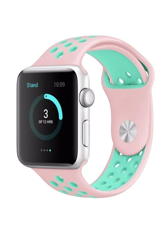 Силиконовый ремешок Sport Nike+ для Apple watch 38mm / 40mm (Pink / Marine Green)