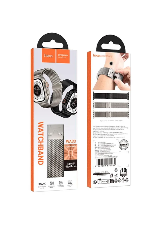 Ремешок Hoco WA33 Original series umbrella buckle Milanese steel strap для Apple watch 44/45/46/49mm