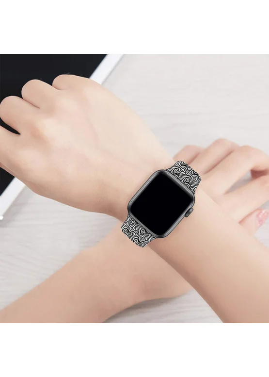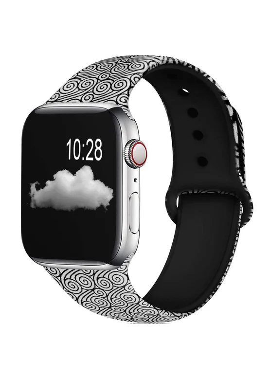 Силиконовый ремешок с рисунком для Apple watch 42mm / 44mm (Черно-белые узоры)