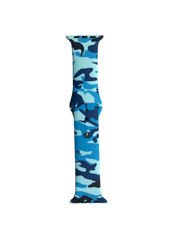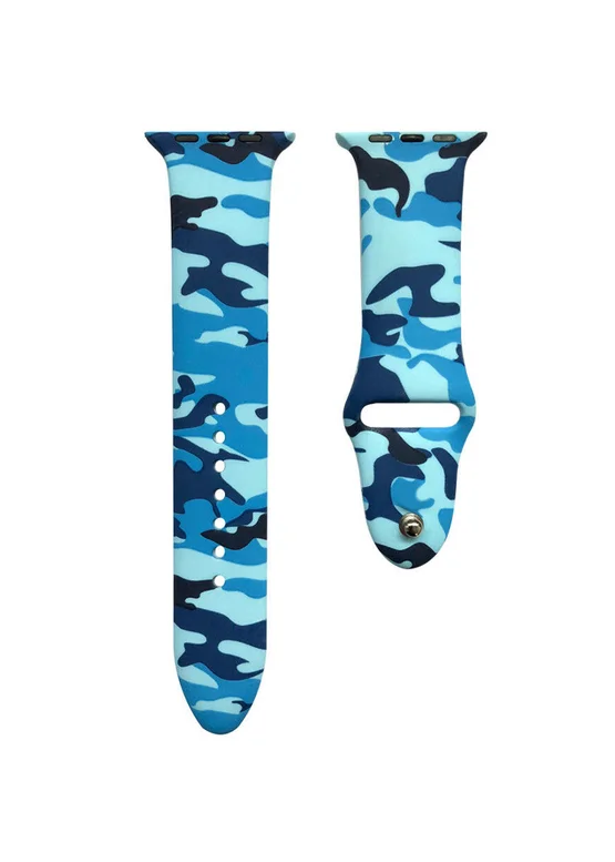 Силиконовый ремешок с рисунком для Apple watch 42mm / 44mm (Синий / Камуфляж)