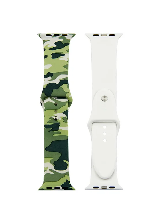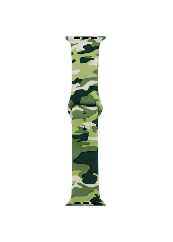 Силиконовый ремешок с рисунком для Apple watch 42mm / 44mm (Зеленый / Камуфляж)