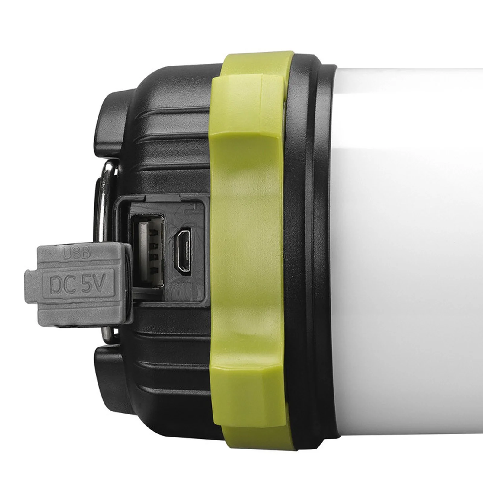 Фонарь с USB-входом и встроенным аккумулятором емкостью 3000 мАч можно использовать в качестве портативного зарядного устройства (повербанка).