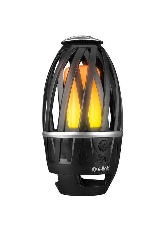 Аккумуляторный фонарь с эффектом пламени, имеющий футуристичный дизайн.