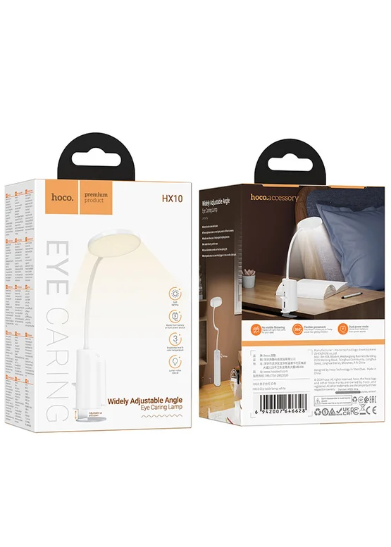 Настольная LED лампа Hoco HX10 Clip table lamp (1200mAh) White
