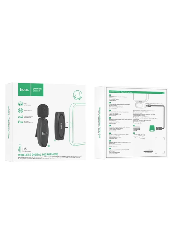 Петличный беспроводной микрофон Hoco L15 Crystal Type-C Black