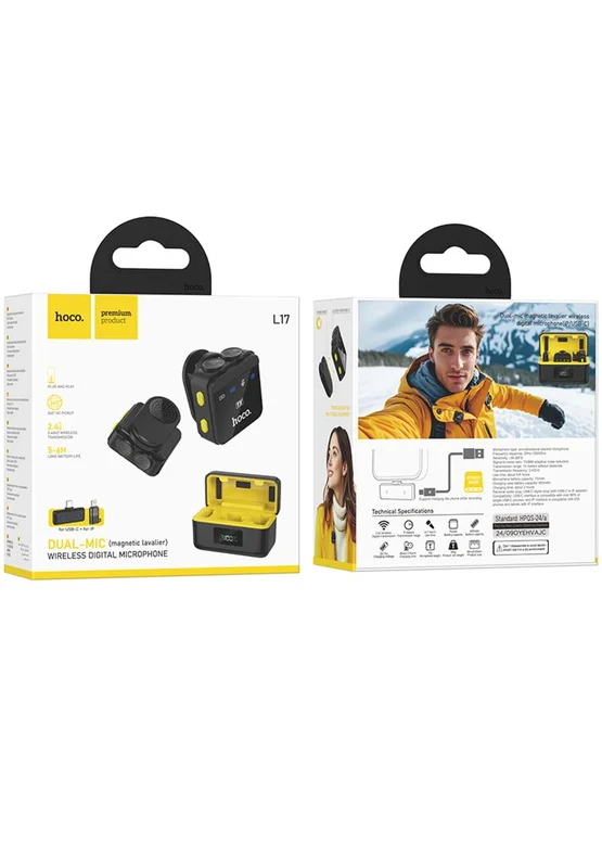 Петличный беспроводной микрофон Hoco L17 Dual-mic magnetic (Lightning/Type-C)