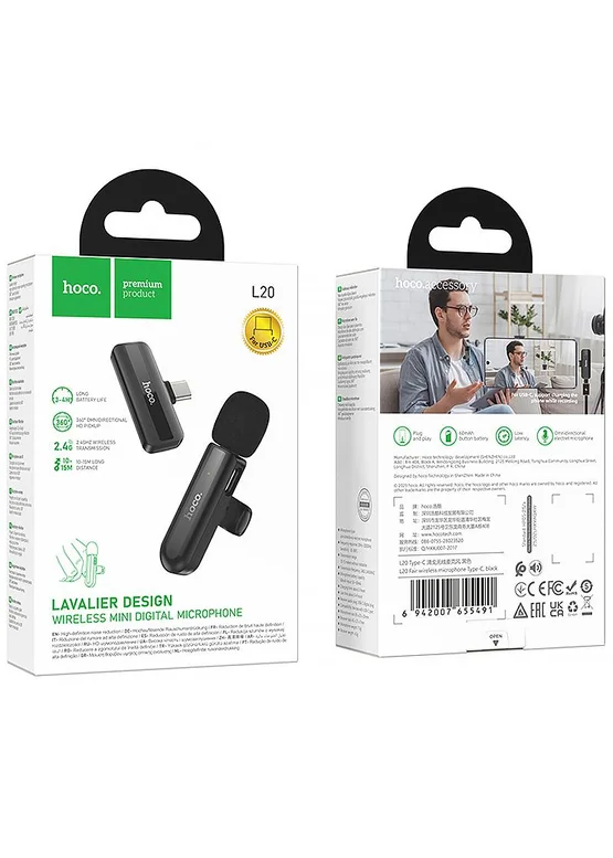 Петличный беспроводной микрофон Hoco L20 Fair Type-C Black