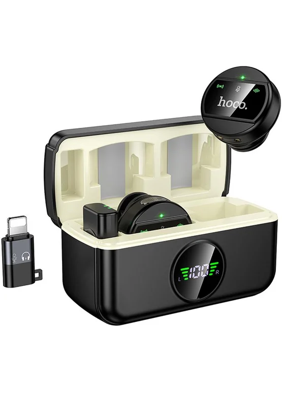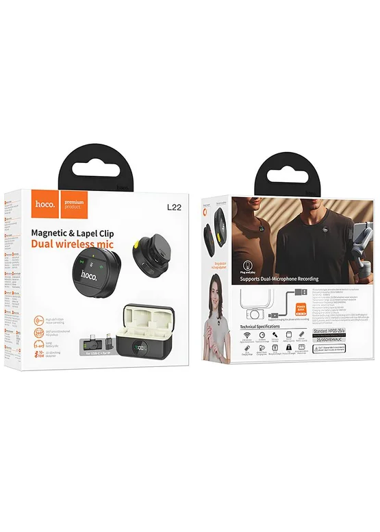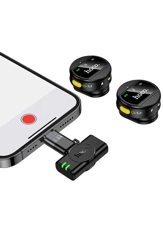 Петличный беспроводной микрофон Hoco L22 Bright 2in1 (Lightning/Type-C) Black