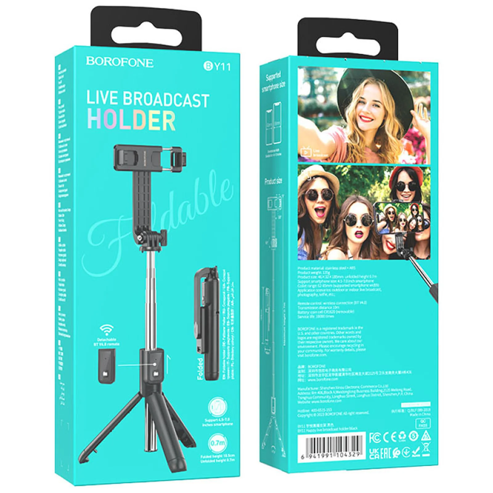 Монопод для селфи Borofone BY11 Happy с треногой + съемный BT пульт Black