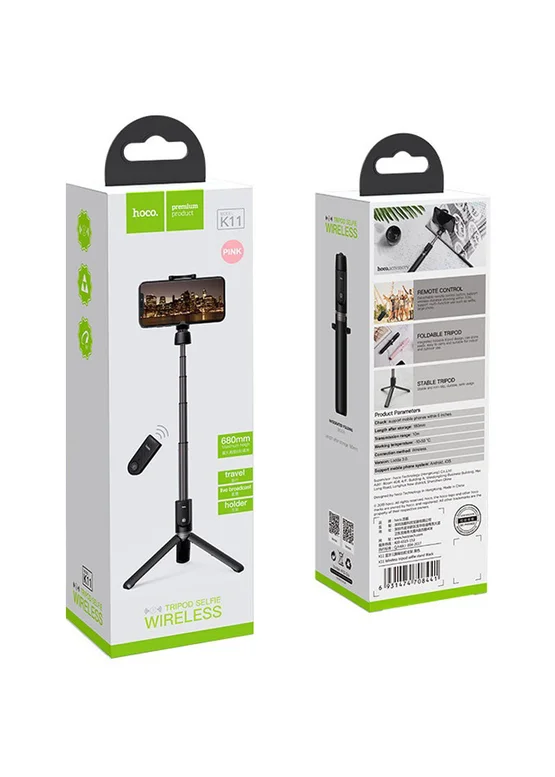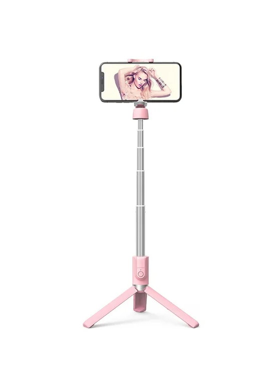 Монопод для селфи Hoco K11 с треногой + съемный BT пульт (Розовый)