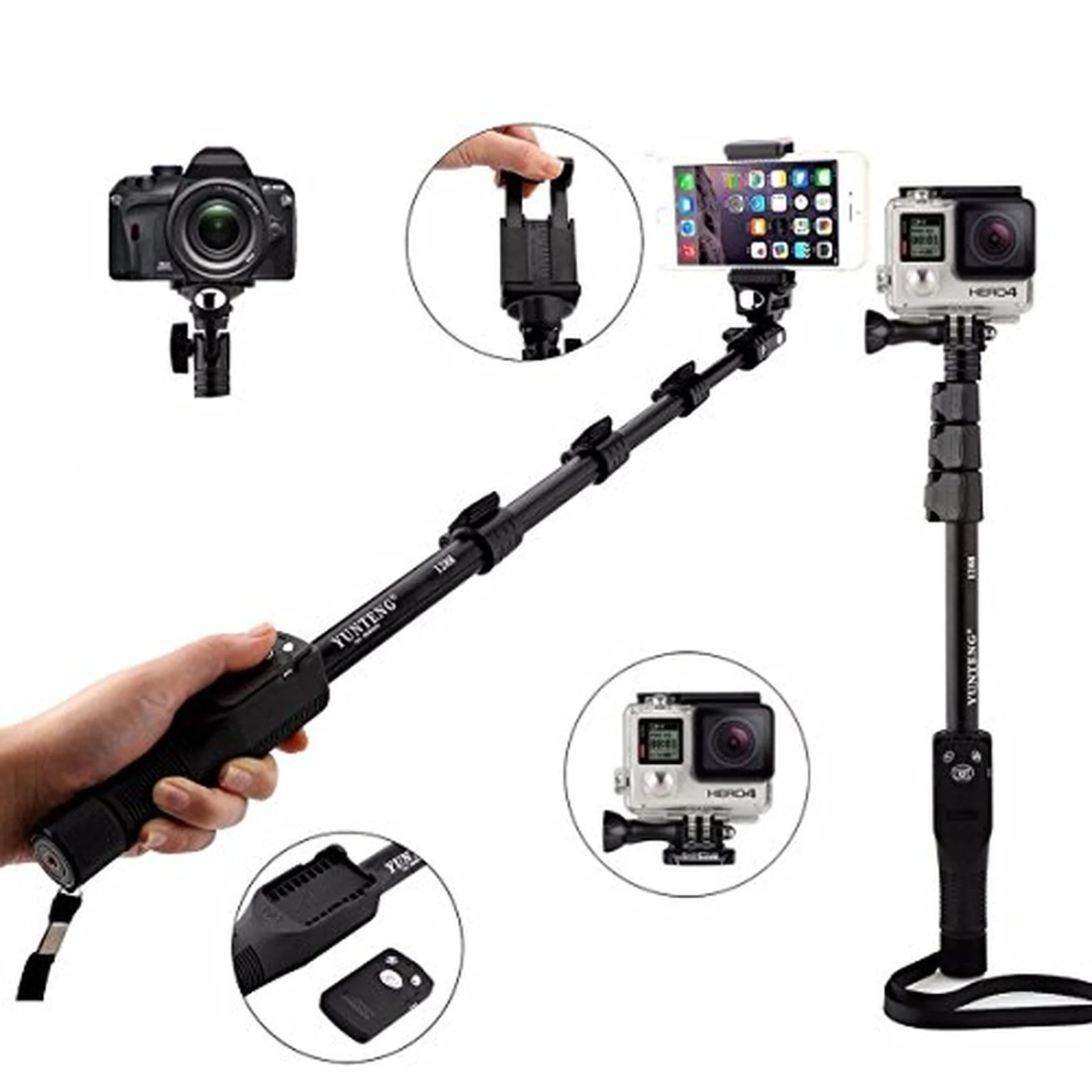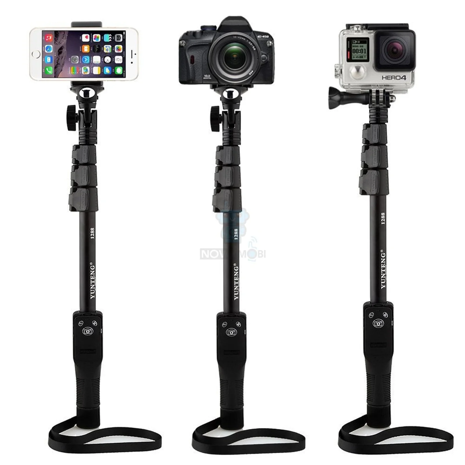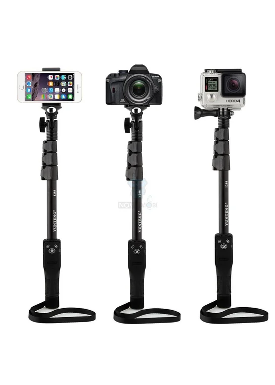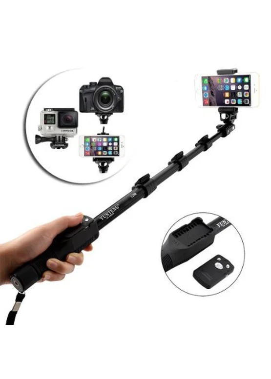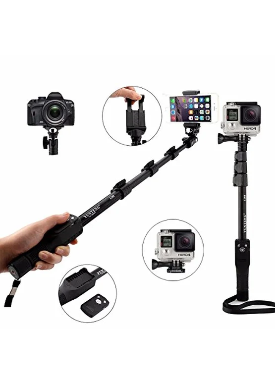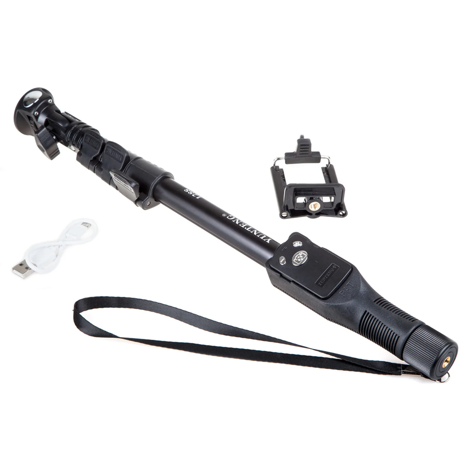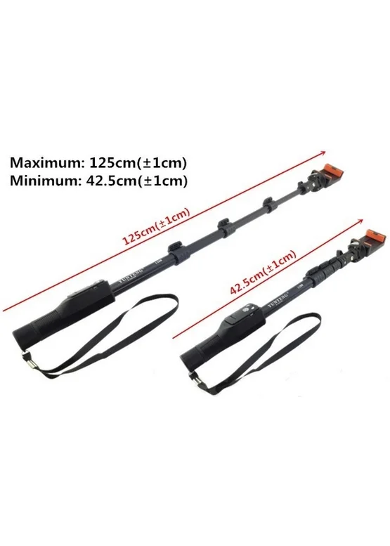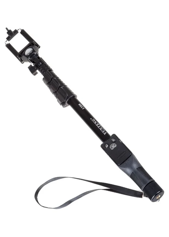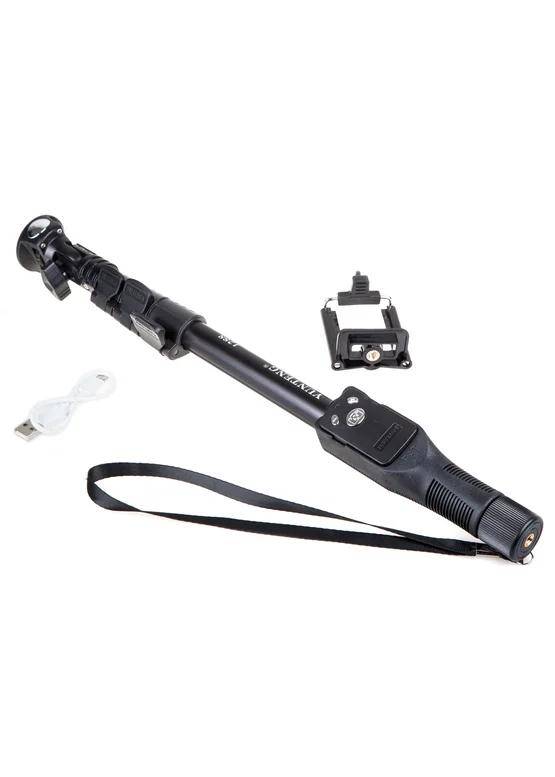 Монопод с беспроводной активацией камеры. Подключается к гаджету через Bluetooth. Максимальная длинна 125 сантиметров, минимальная 42 сантиметра. Монопод достаточно прочный для того чтоб удерживать как обычный смартфон, так и тяжёлую фото или видеокамеру. Угол держателя для гаджета регулируется и фиксируется. Монопод очень качественный и не прокручивается.