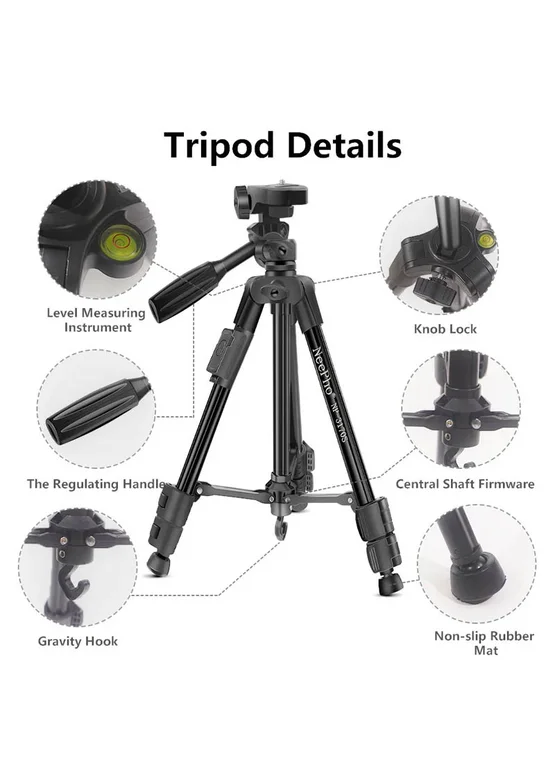 Штатив NeePho NP-3170S (не съемная площадка+держатель/BT-пульт/40-105см) Black