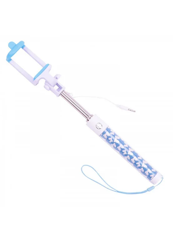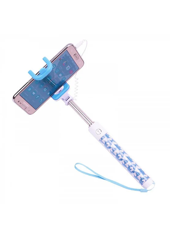 Телескопический монопод S015 для селфи (кабель 3,5) (Голубой)