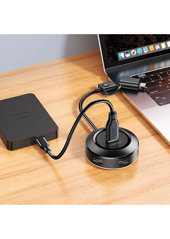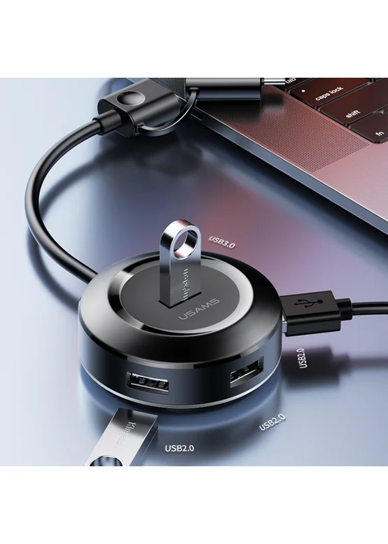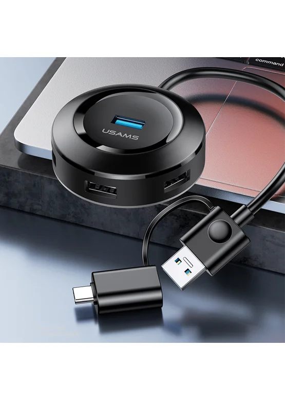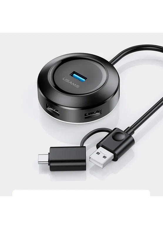 Адаптер USAMS US-SJ416 4 USB HUB Smart Adapter USB3.0+Type-C3.0 (Черный)