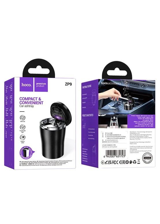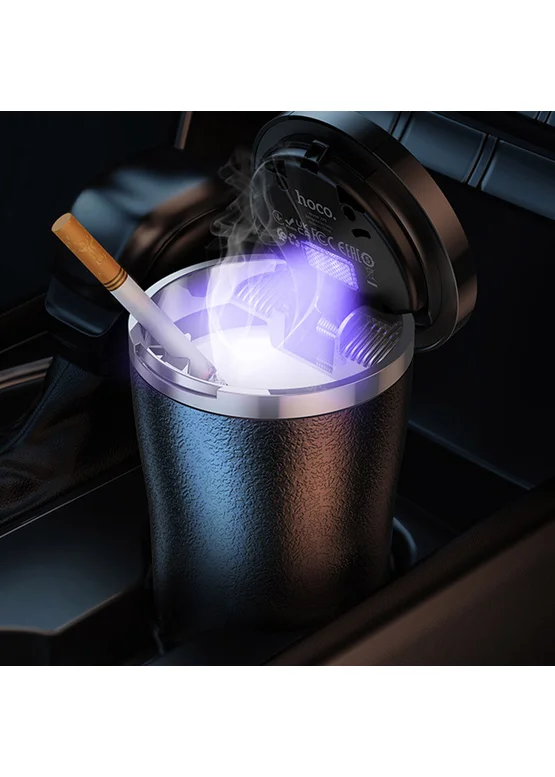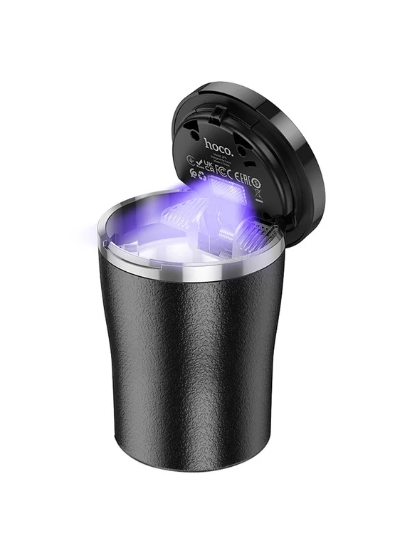 Автомобильная пепельница Hoco ZP9 Solar с крышкой Black
