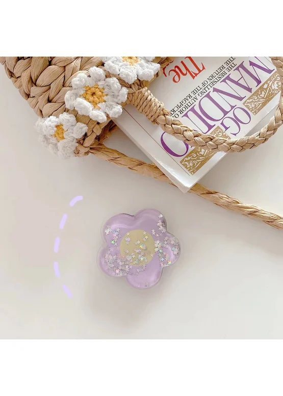 Держатель для телефона круглый (liquid shine) Цветок / Сиреневый