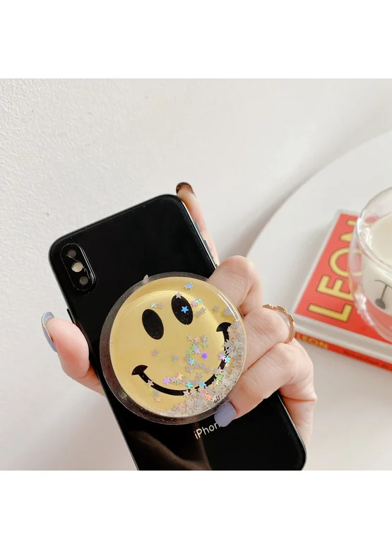 Держатель для телефона круглый (liquid shine) Смайл желтый