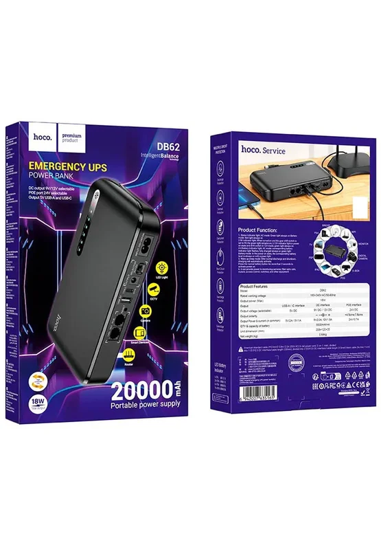 Источник бесперебойного питания Hoco DB62 Smart Mini UPS для роутеров 5V/9V/12V 20000 mAh Black