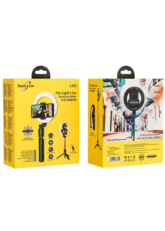 Кольцевая лампа с держателем Hoco LV03 Черный