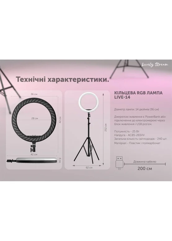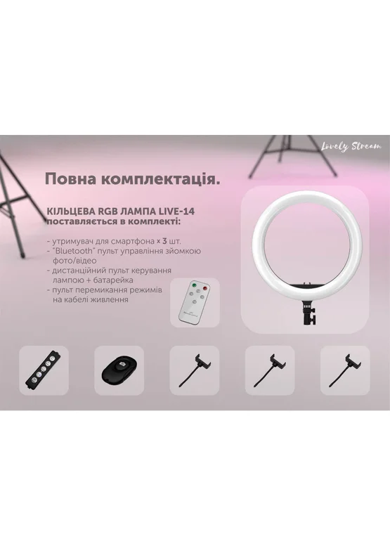 Кольцевая LED лампа Lovely Stream 14'' с пультом управления Черный