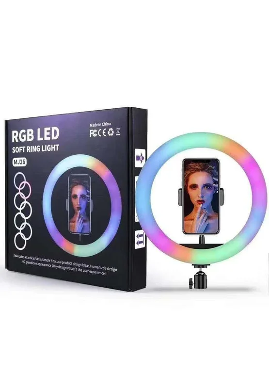 Кольцевая LED лампа RGB MJ-26, 200 диодов, 26 см (Черный)