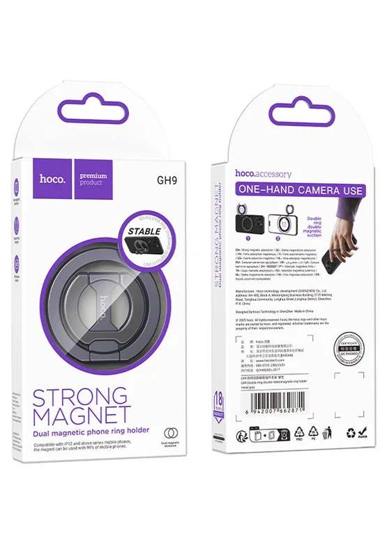 Магнитный держатель для телефона Hoco GH9 Double-ring Metal gray