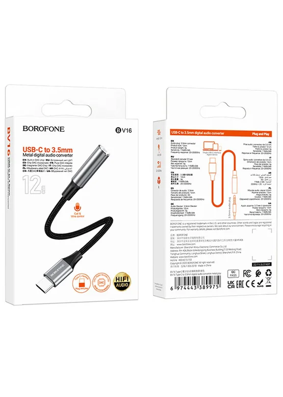 Переходник Borofone BV16 Type-C to 3.5mm Metal gray